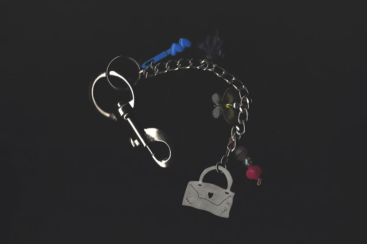 Materials: Stainless Steel Charm, Key Ring, Chain, Beads, and Found Objects
